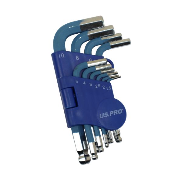 US PRO 10PC COLOURED SHORT METRIC BALL END HEX KEY SET