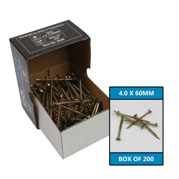 US PRO 4.0 X 60MM CSK POZI ADVANCED MULTI PURPOSE SCREWS – BOX 200