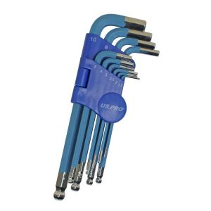 US PRO 10PC COLOURED LONG METRIC BALL END HEX KEY SET